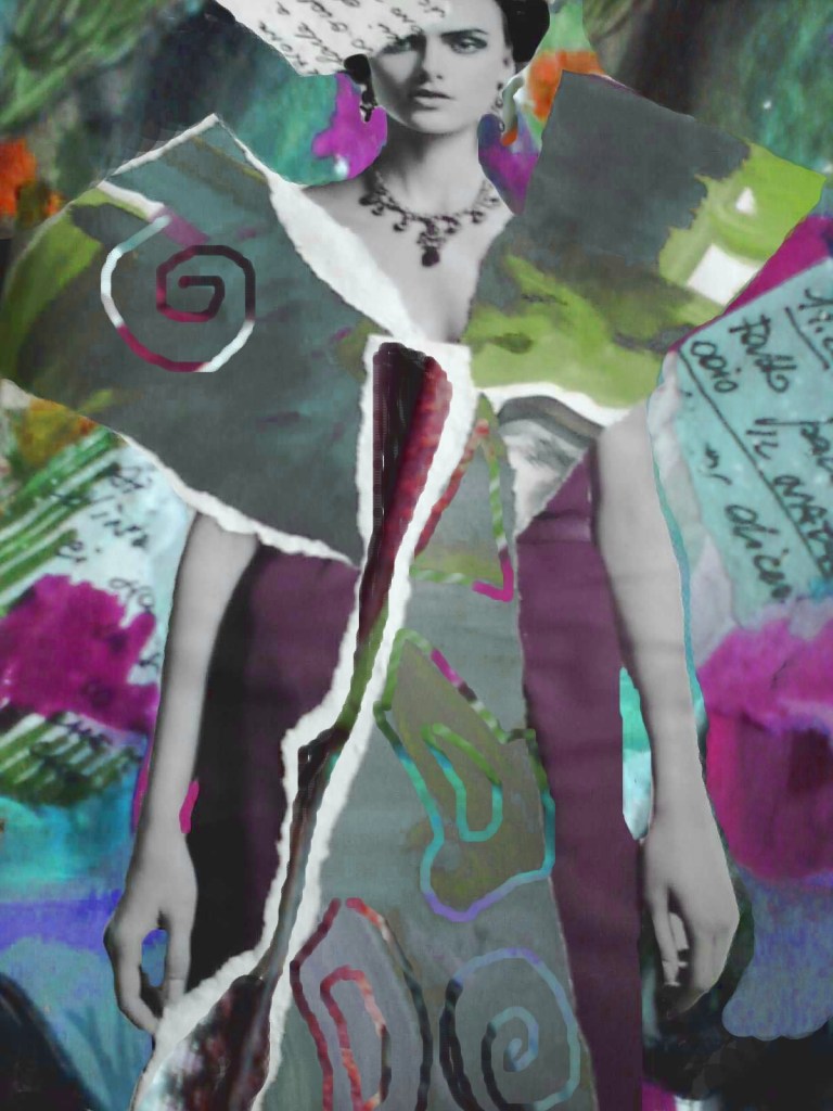 Uno piccino di cuoio ha attirato la mia attenzione e così l’ho aperto. Una magnifica dedica in lettering gotico. E poi, pagina dopo pagina, piccoli collage che di me parlavano. Me lo sono immaginato il mio Principe curvo con colla e forbicine a farmi la sorpresa.
