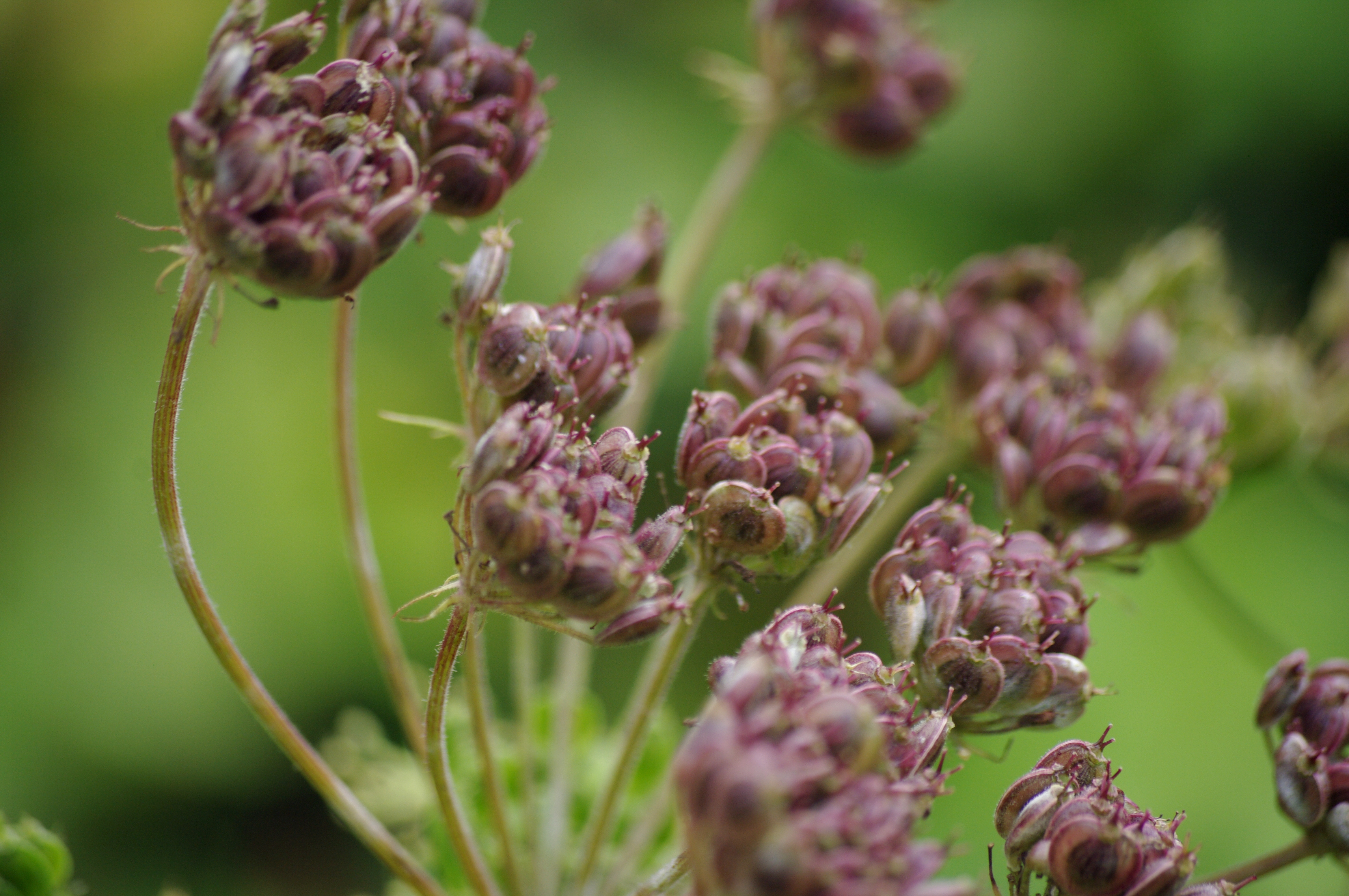 Quella forma appartiene all’Angelica sylvestris. Un’inflorescenza che è un pizzo vegetale e che acquisisce diverse tonalità dal bianco al verde, dal verde al bordeau, a seconda del grado di maturazione.