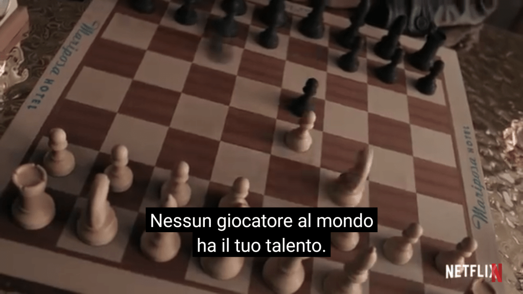Non sono una patita di serie. Ho visto la mini serie “La regina degli scacchi” su Netfix appena è uscita, e mi è davvero piaciuta. Brava l’attrice e buona la fotografia e la regia. Ben costruita la storia della bambina orfana che, per caso, impara nello scantinato a giocare a scacchi.