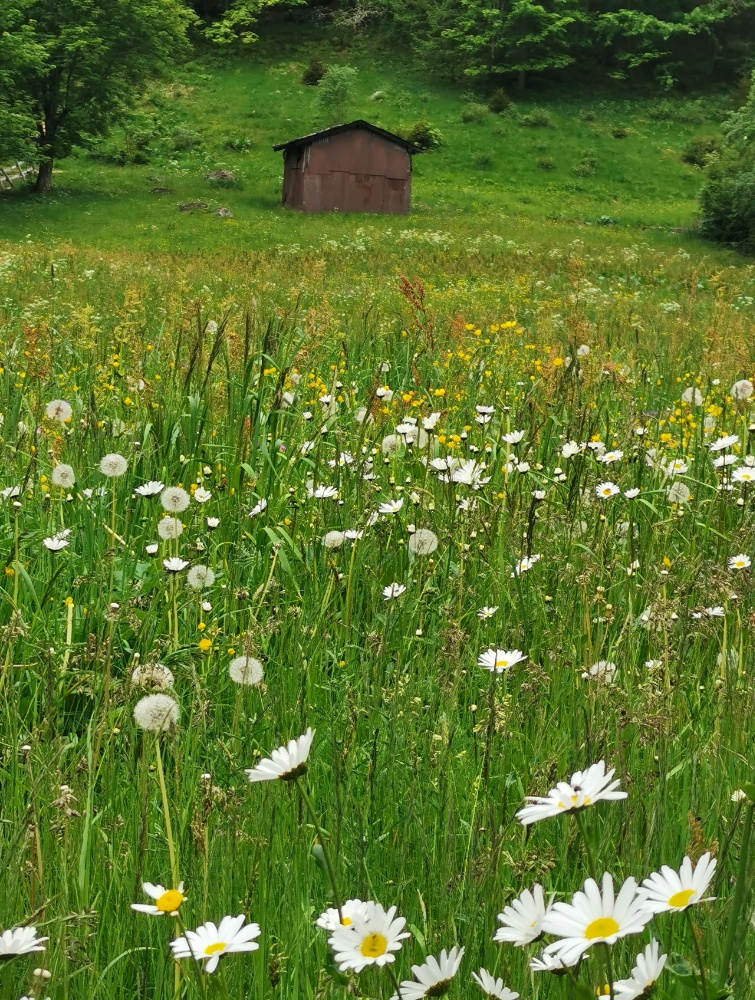 C’è un’esplosione di profumi colori forme nei prati. Qui in montagna la primavera non decolla. Il sole esce metà giornata poi piove. Ma non manca l’effetto magico di Madame Natura.