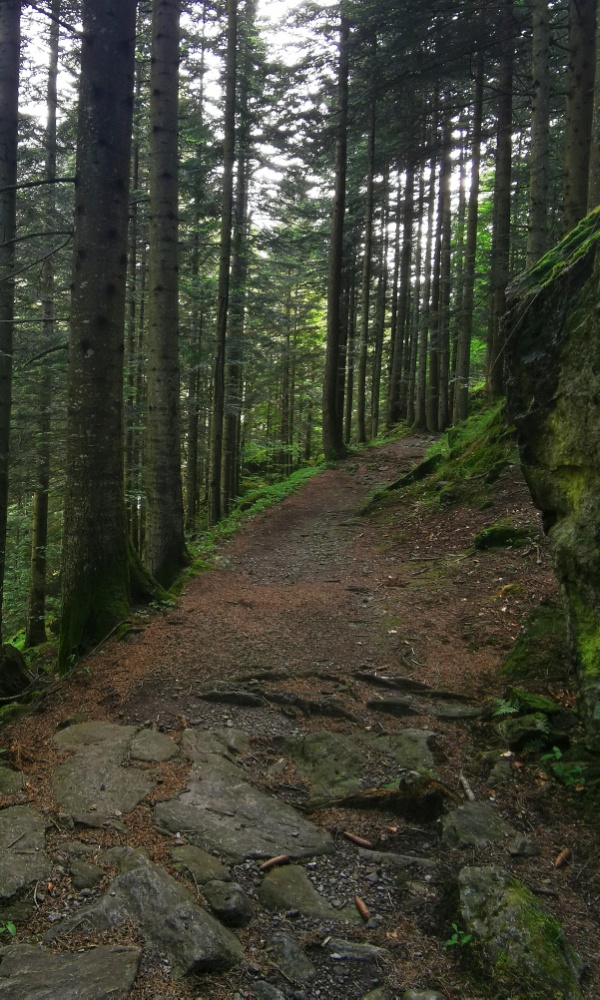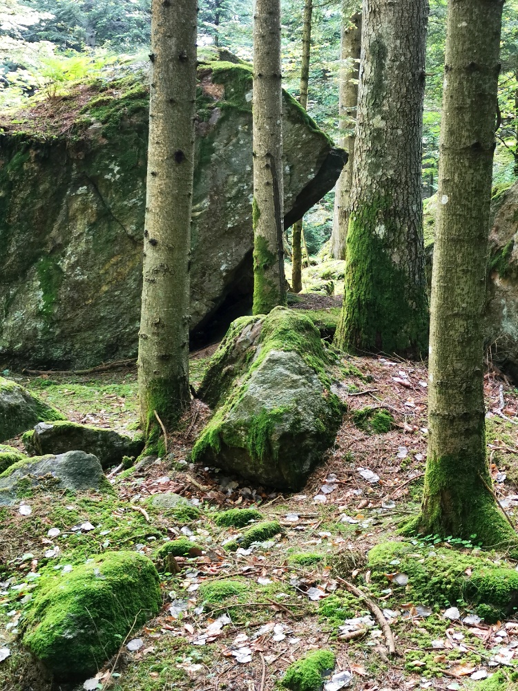 Enormi massi erratici e muschio. Un silenzio rotto solo dallo scrosciare dell’acqua impetuosa del torrente