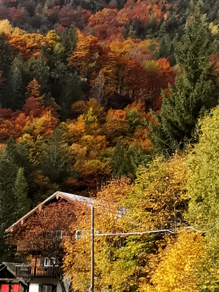 Cominciano i rossi dopo il giallo zafferano. Adoro questa trasformazione cromatica e quotidiana dei boschi. È il periodo in cui alzo gli occhi per ammirare. A volte, scendendo in valle, fermo anche la macchina per vedere le esplosioni.