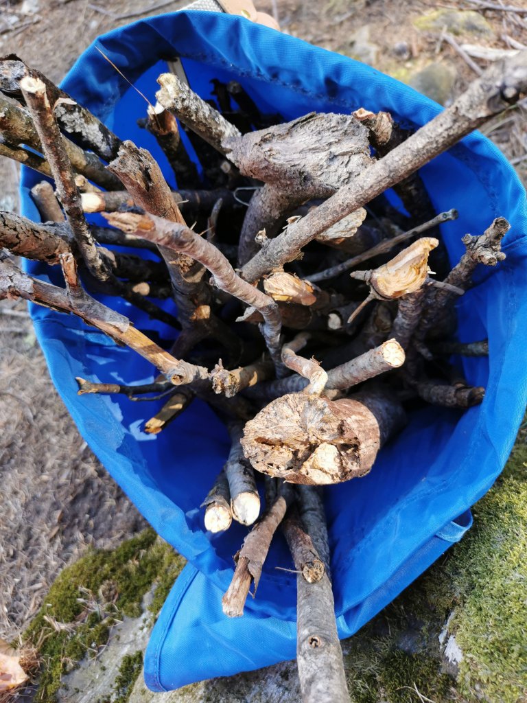 Per fortuna il vento che qui soffia spesso fa cadere diversi rami secchi che è facile spezzettare – scrocchianti come vecchie ossa.
