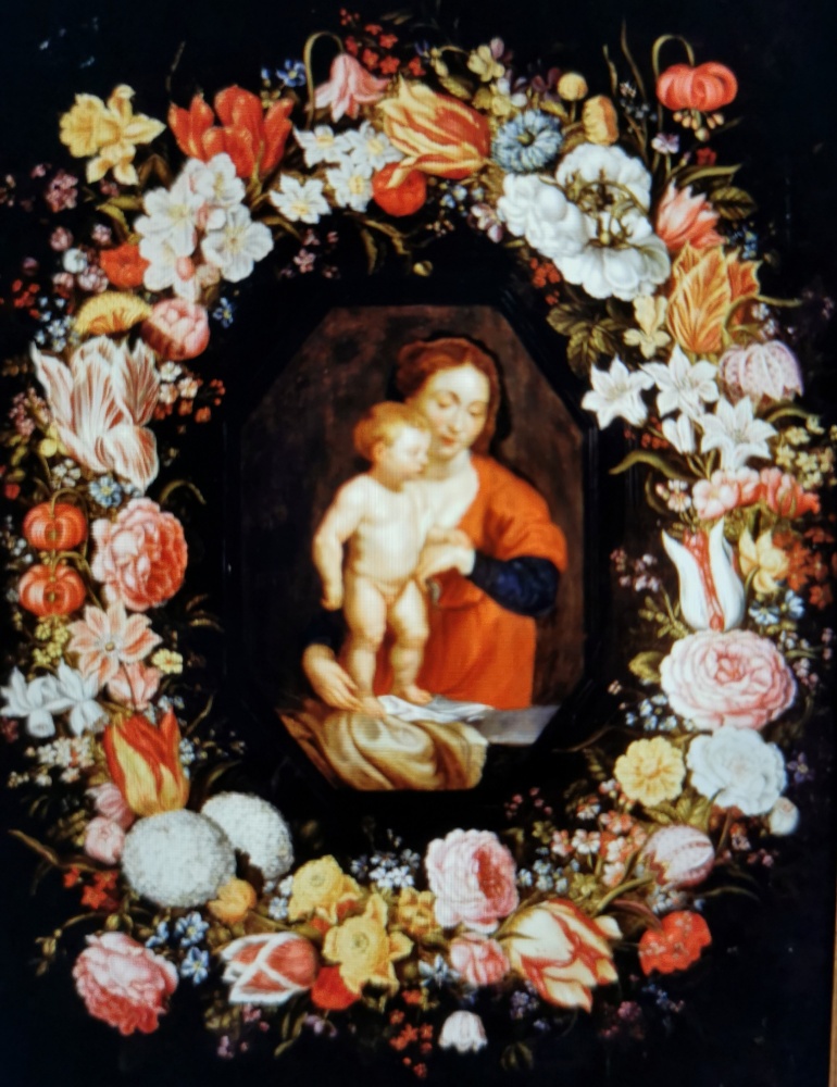 (Madonna con bambino in una ghirlanda di fiori. Paul Rubens 1616)