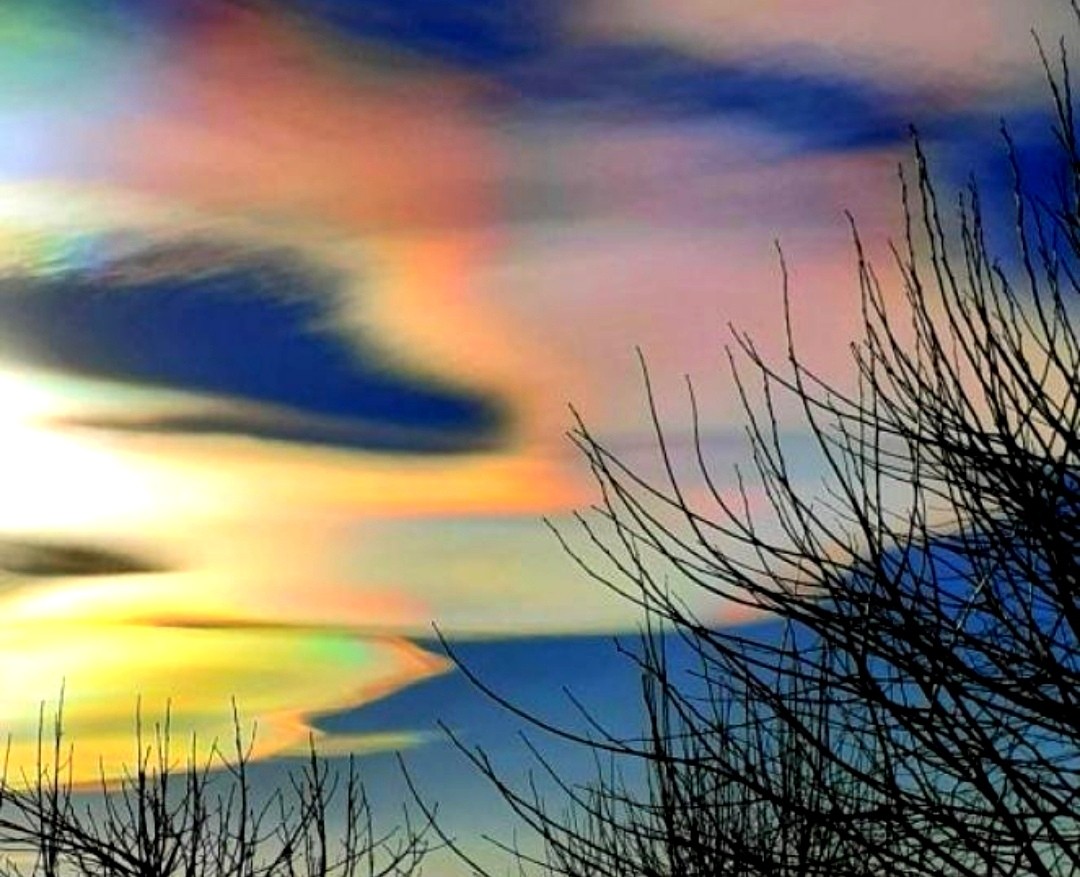 Pare che qualcuno si sia divertito ad acquarellare la tela del cielo. Forse avremo aurore boreali anche da noi. Che bello!
