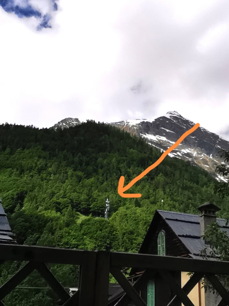 5882 passi segna il mio orologio digitale. Li faccio ogni mattina, tempo permettendo, per andare a fare colazione. Ora sono in giardino e, in primo piano, c’è la griglia in legno della mia fioriera. Dove c’è la freccia è il ripetitore antenna che segna circa del percorso a salire. Dove ero poco fa.