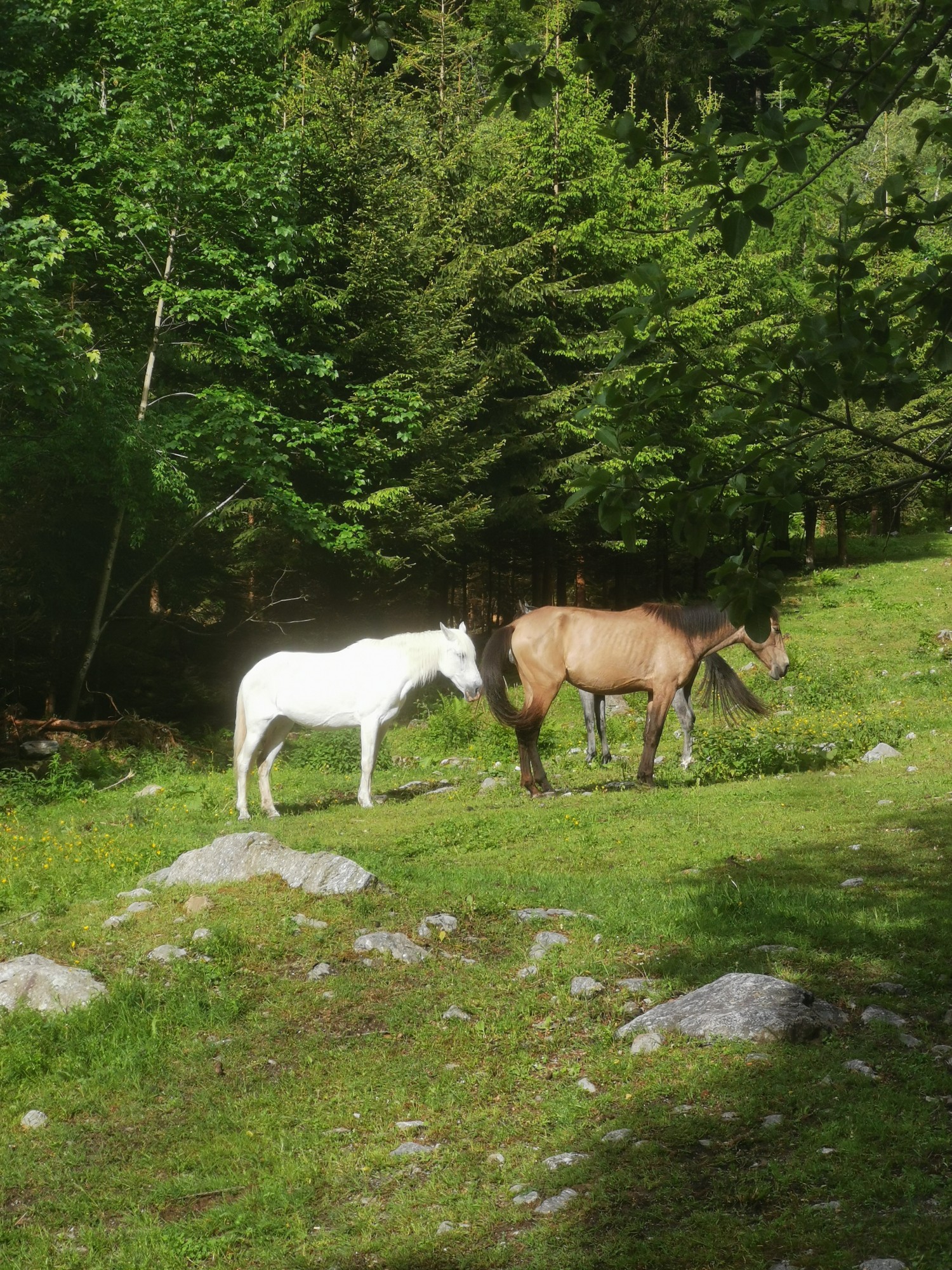 Il canto degli uccelli, asini e cavalli al pascolo. Stamattina quattro corvi montani.