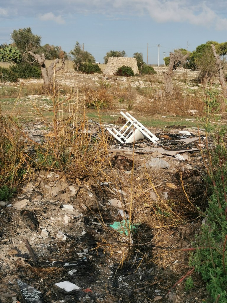 Sono in Salento. Perché rovinare questa terra magnifica sfregiando e violentando prati fiori e terra? Perché tutte queste bottiglie di vino e birra buttate dal finestrino? Piatti di plastica sacchetti spazzatura plastica.