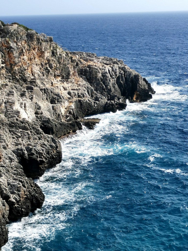 Fare due passi sulla costa che parte dal Faro di Santa Maria di Leuca è uno spettacolo di rocce e onde che si infrangono. Oggi vento. Nove anni fa avevo la casa proprio sotto il Faro.