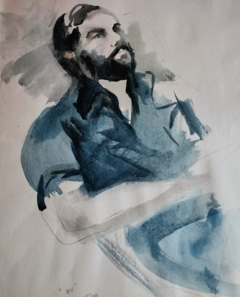 Questo è un ritratto che ho fatto a Babu. Potrei scrivere un libro su Babu. Sarebbe un libro comico. Grottesco.