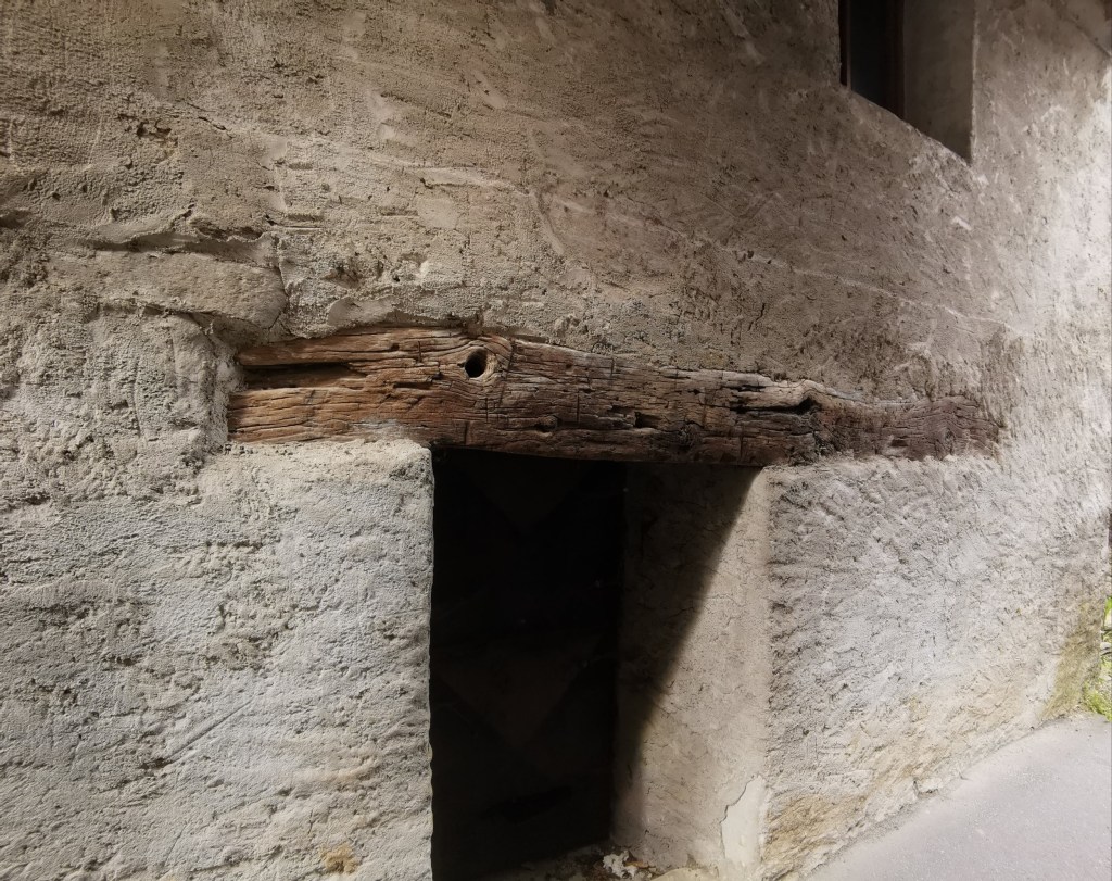 Mura spesse per mantenere il calore di un camino e travi antiche.