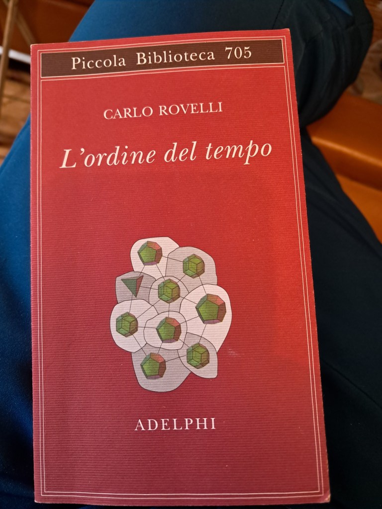 Cercavo un libro di Melville che ho letto e riletto, in particolare per un racconto che mi ha davvero colpito. Ho libri sparsi ovunque e senza un ordine preciso se non per collane ( Adelphi, Einaudi…). Il libretto non è molto grande e non mi è stato ancora possibile trovarlo. Naturalmente cercandolo mi sono venuti in mano un sacco di volumi e uno in particolare mi è piaciuto rileggerlo: L’ordine del tempo di Carlo Rovelli.