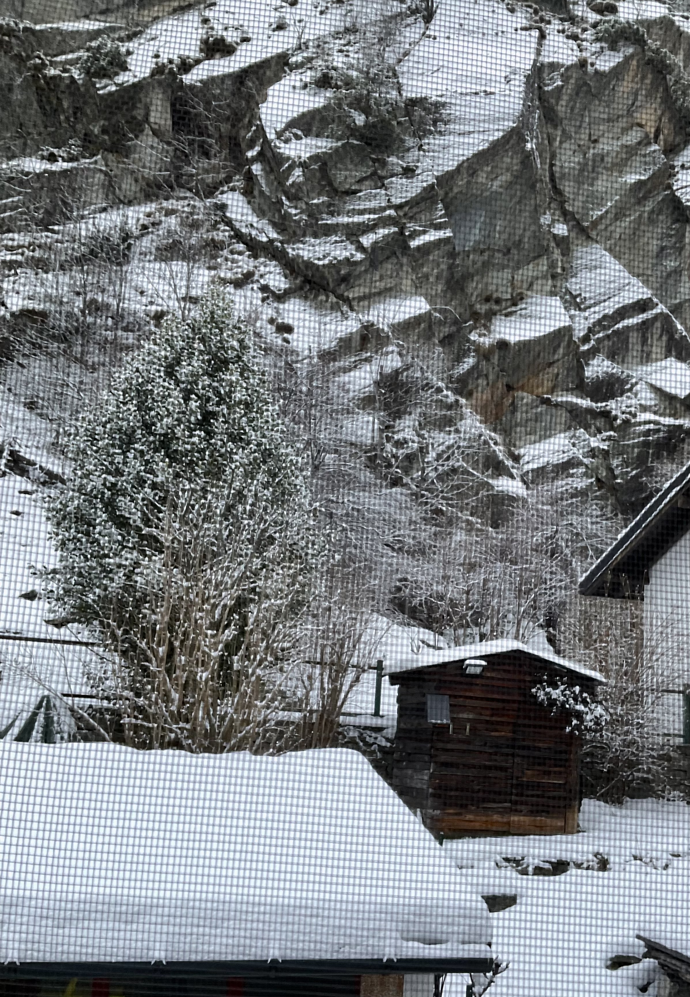la rete sgrana l’immagine e dà un effetto flou al paesaggio innevato