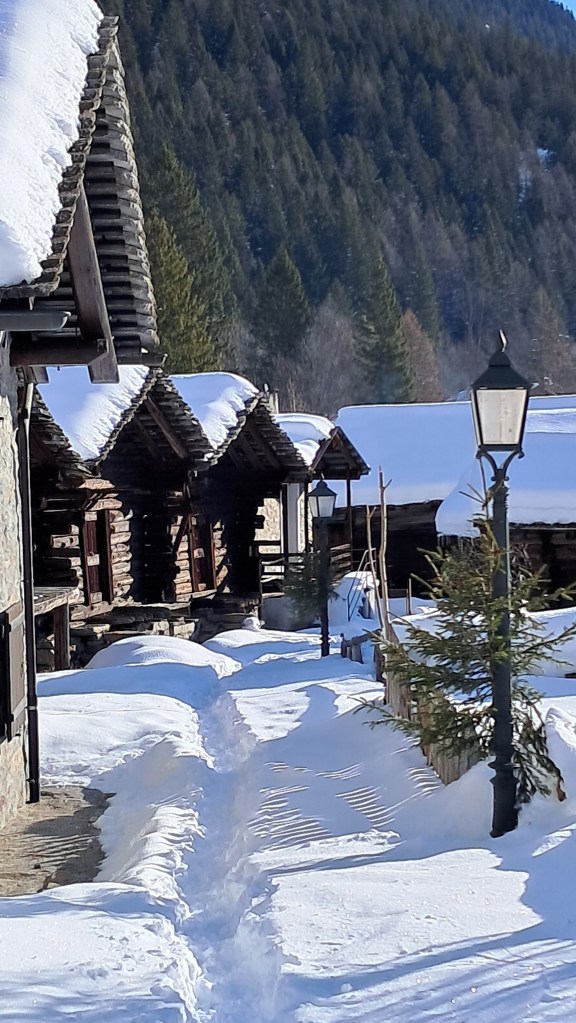 Nonostante il fine settimana c’è in giro pochissima gente. Gli impianti sono chiusi e il silenzio è assoluto. Potrebbe essere un punto di qualità da pubblicizzare: venite a godervi la bellezza della montagna e della neve immacolata non per sciare, ma per stare immersi nella natura incontaminata.